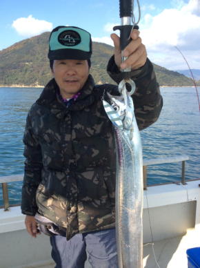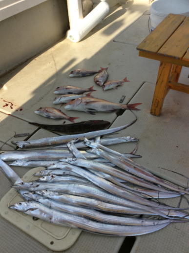 お客様クーラーインで太刀魚、アコウなど入ってました 1本だけ船長の持ち帰りに戴きました