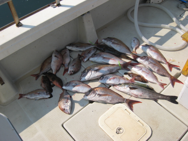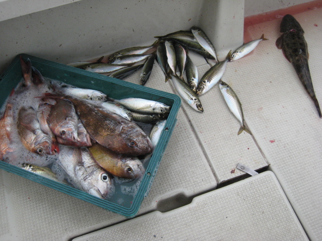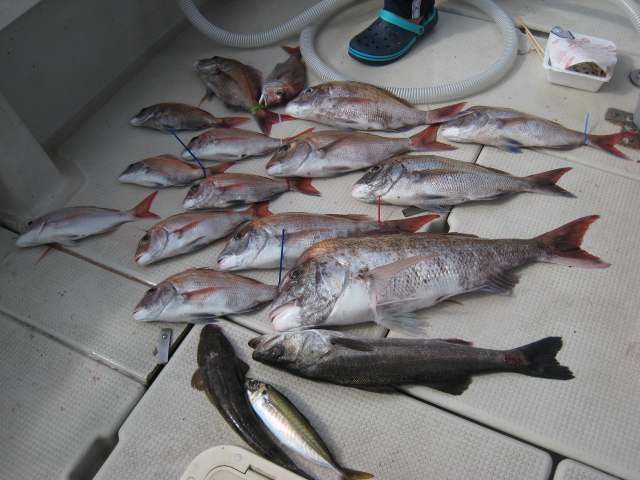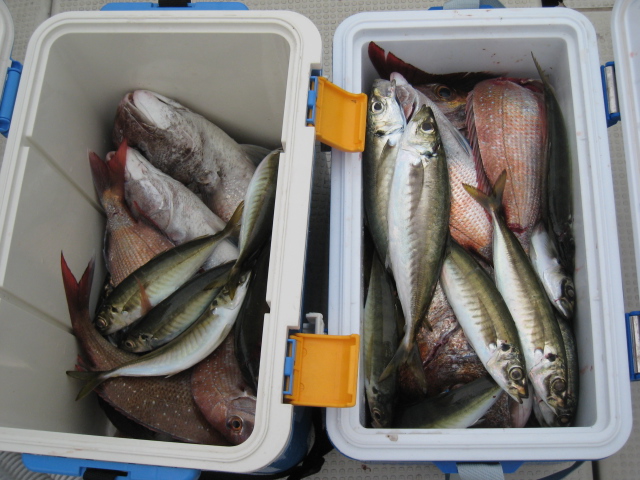 本日は鯵が推定200匹前後と鯛が25枚前後の釣果でした。