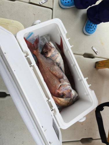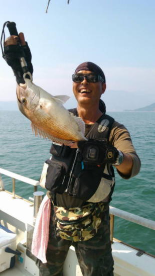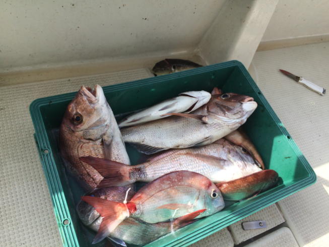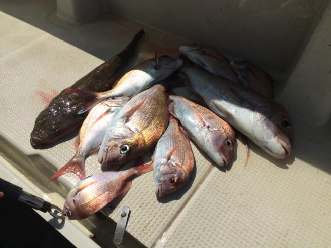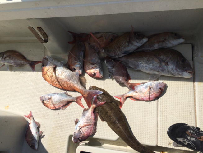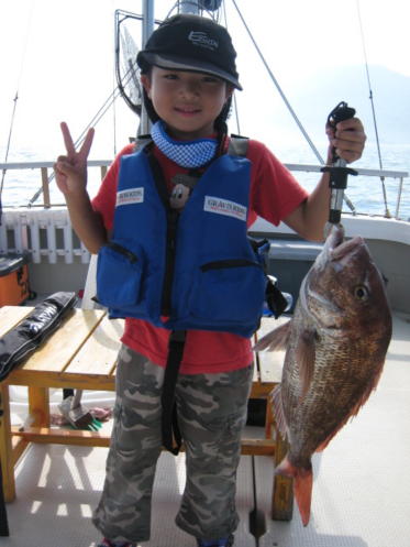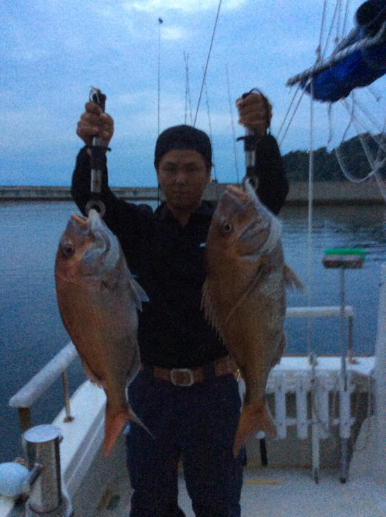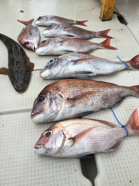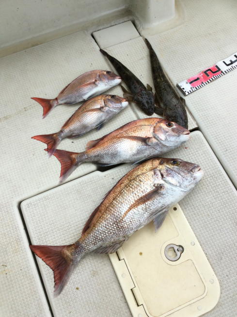 本日は子供さんのデビュー戦に行ってきました。デカマゴチに鯛の曳きも味わってくれました